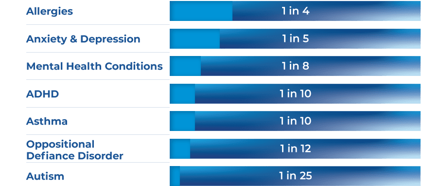 Over the past 30 years, rates of mental health conditions and chronic illness have surged, placing an enormous burden on families, schools, communities, and the social and economic fabric of our country.